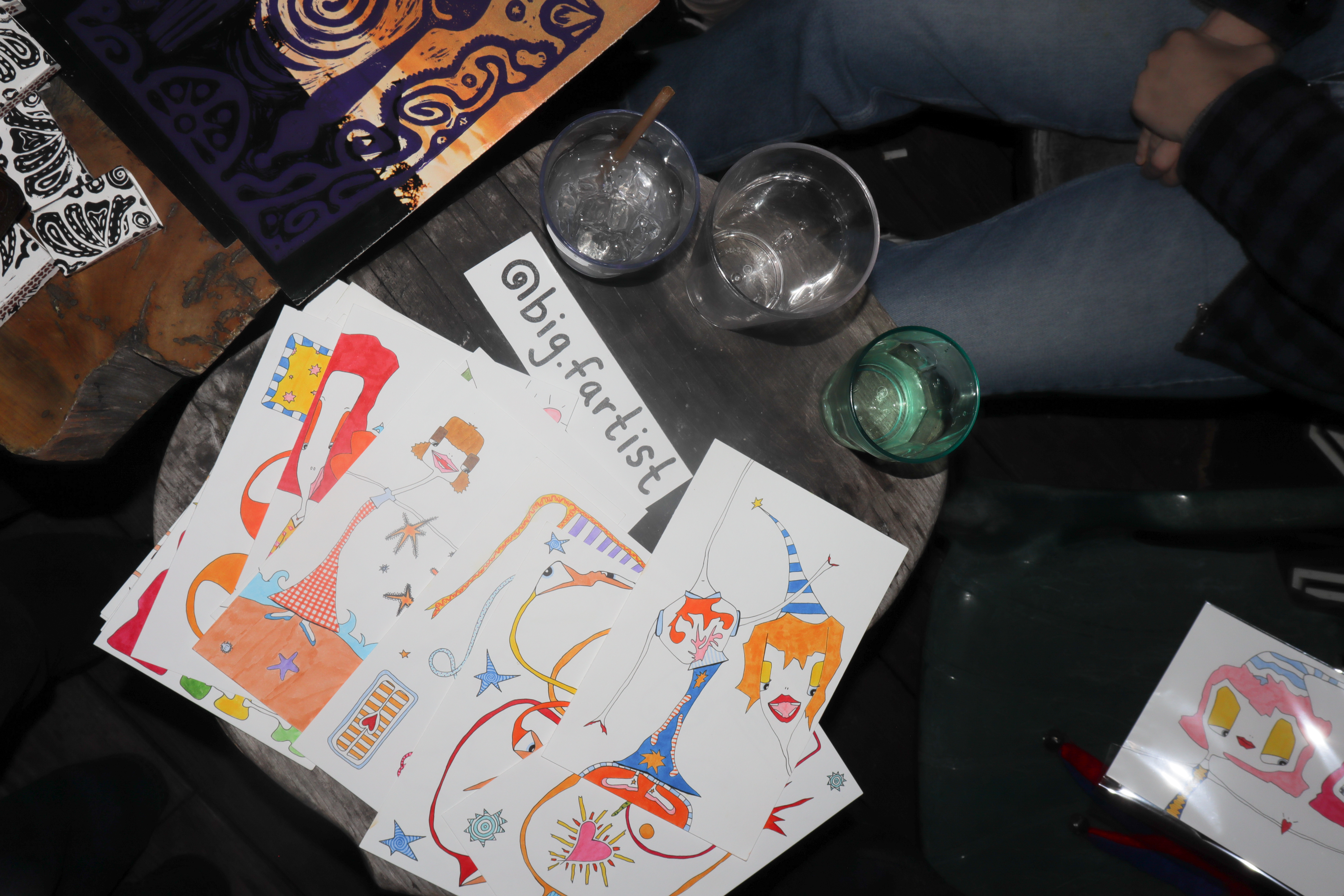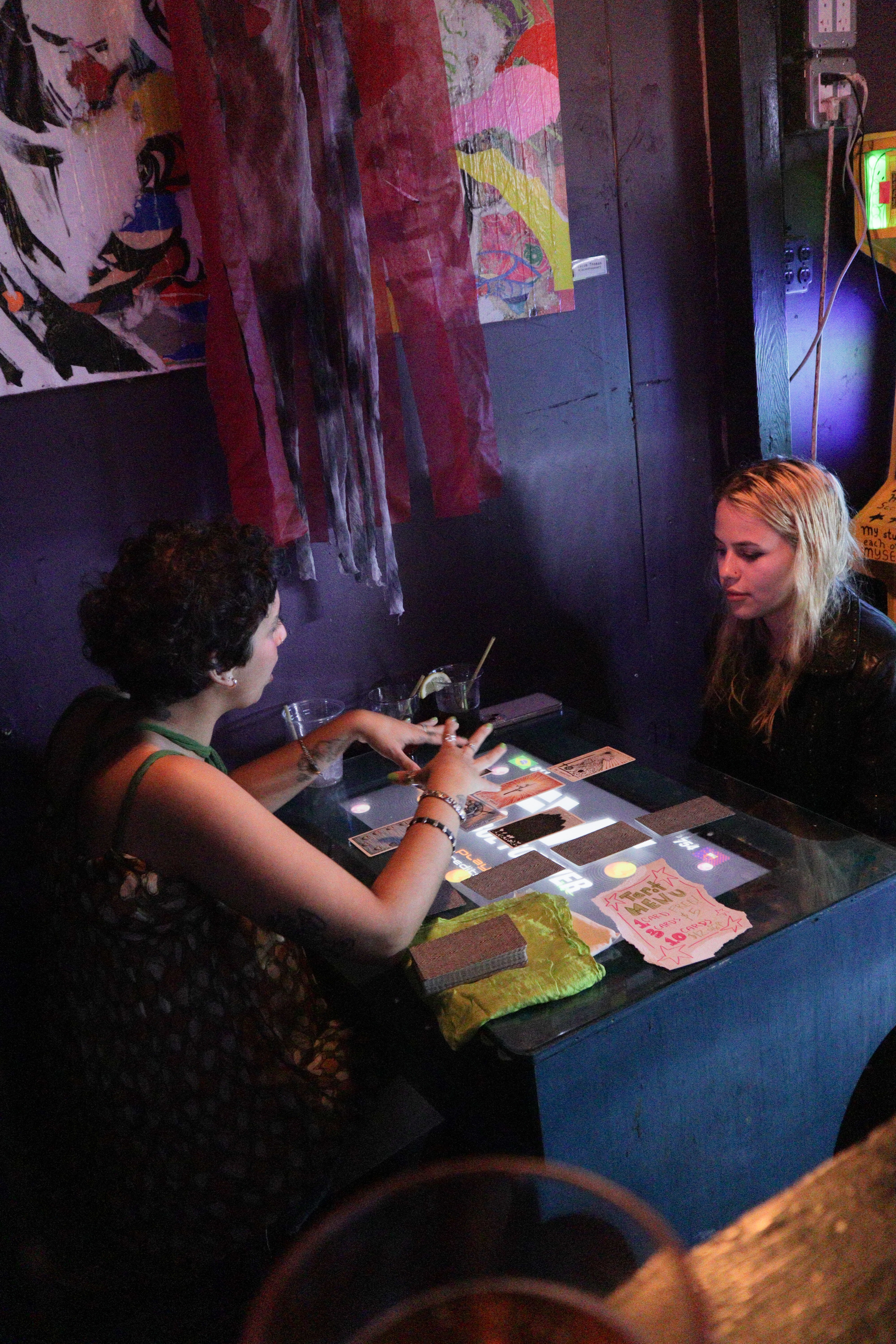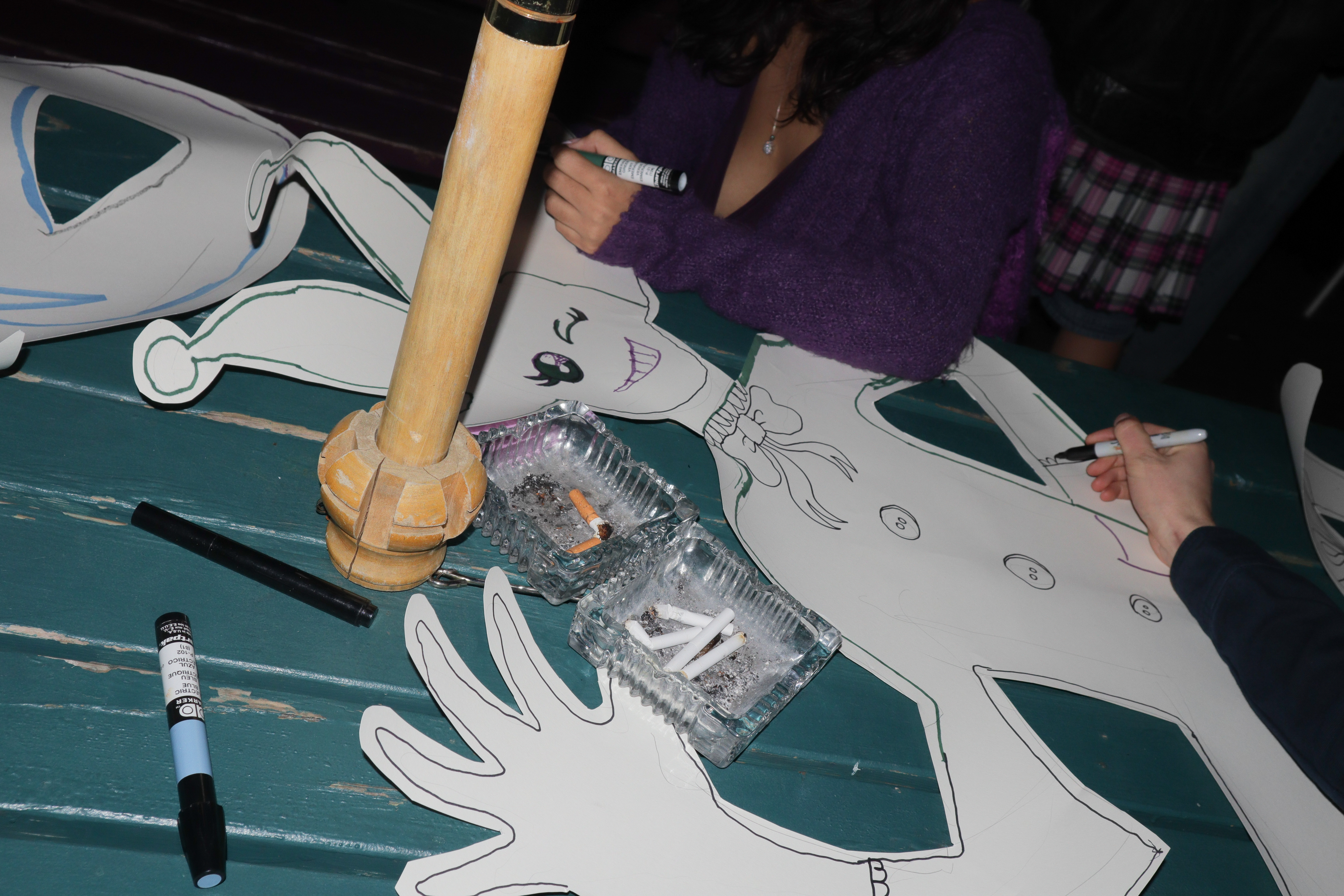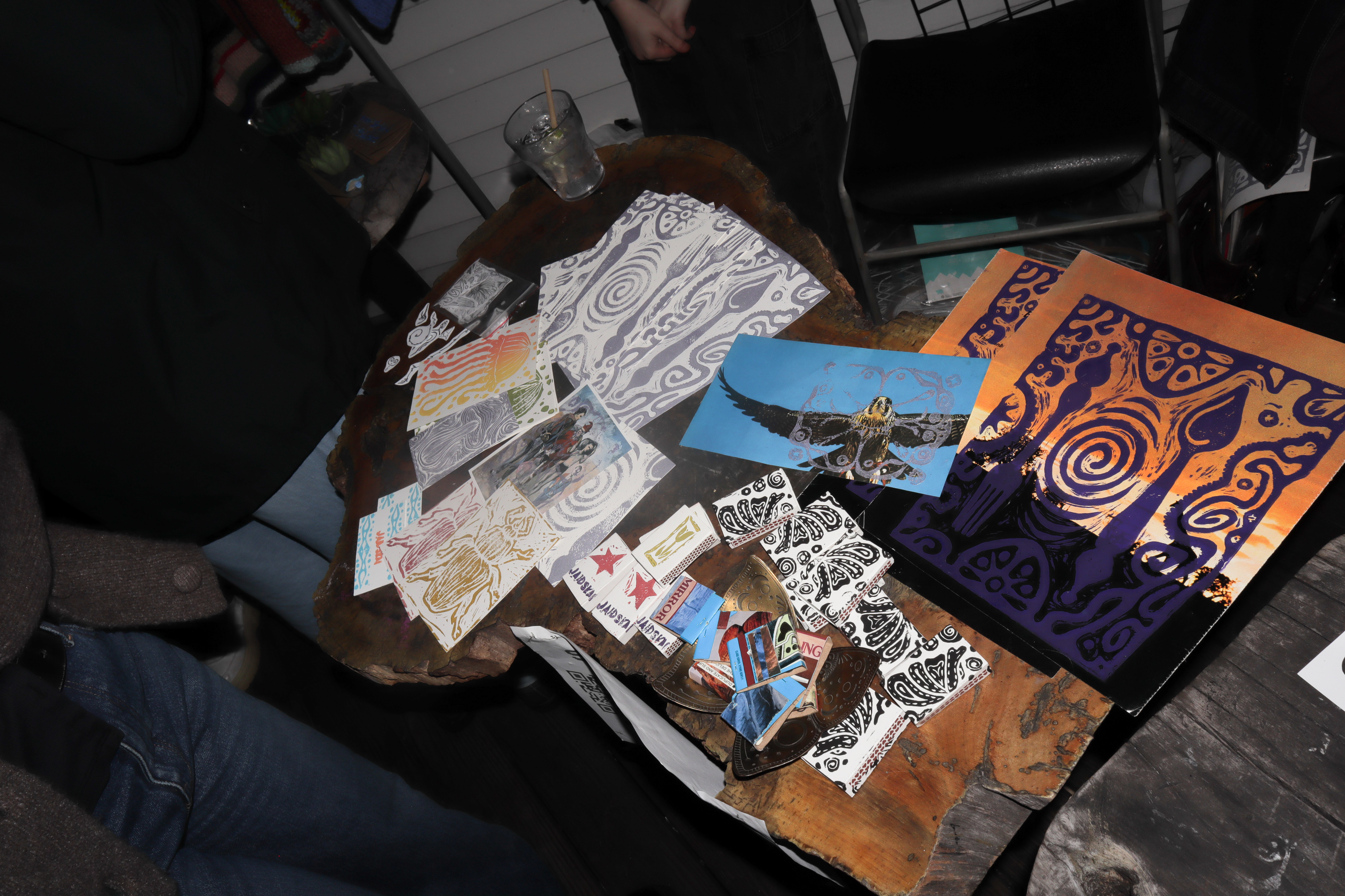 Prints sold by JaidSkai, Big Fartist, and Shanta La. Clothing designs by Nyta Lee and Shayna Block. Press-on nail sets by Stella Nails. Live mehendi flash (henna) by Shanta La. Tarot readings and face painting throughout the night by Scatterbrain Magazine. Photography by Kevin Gutoskey and Drew.
