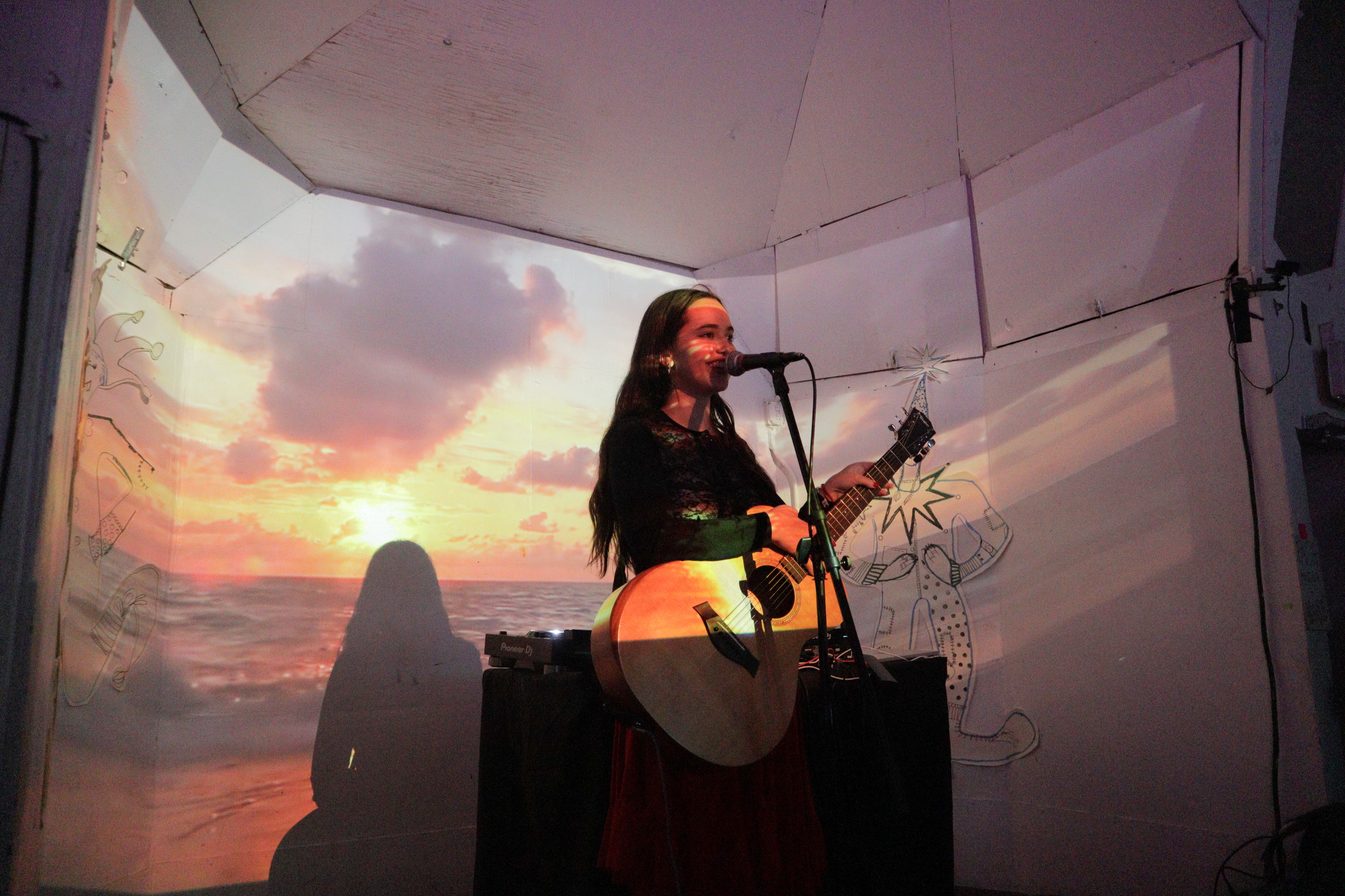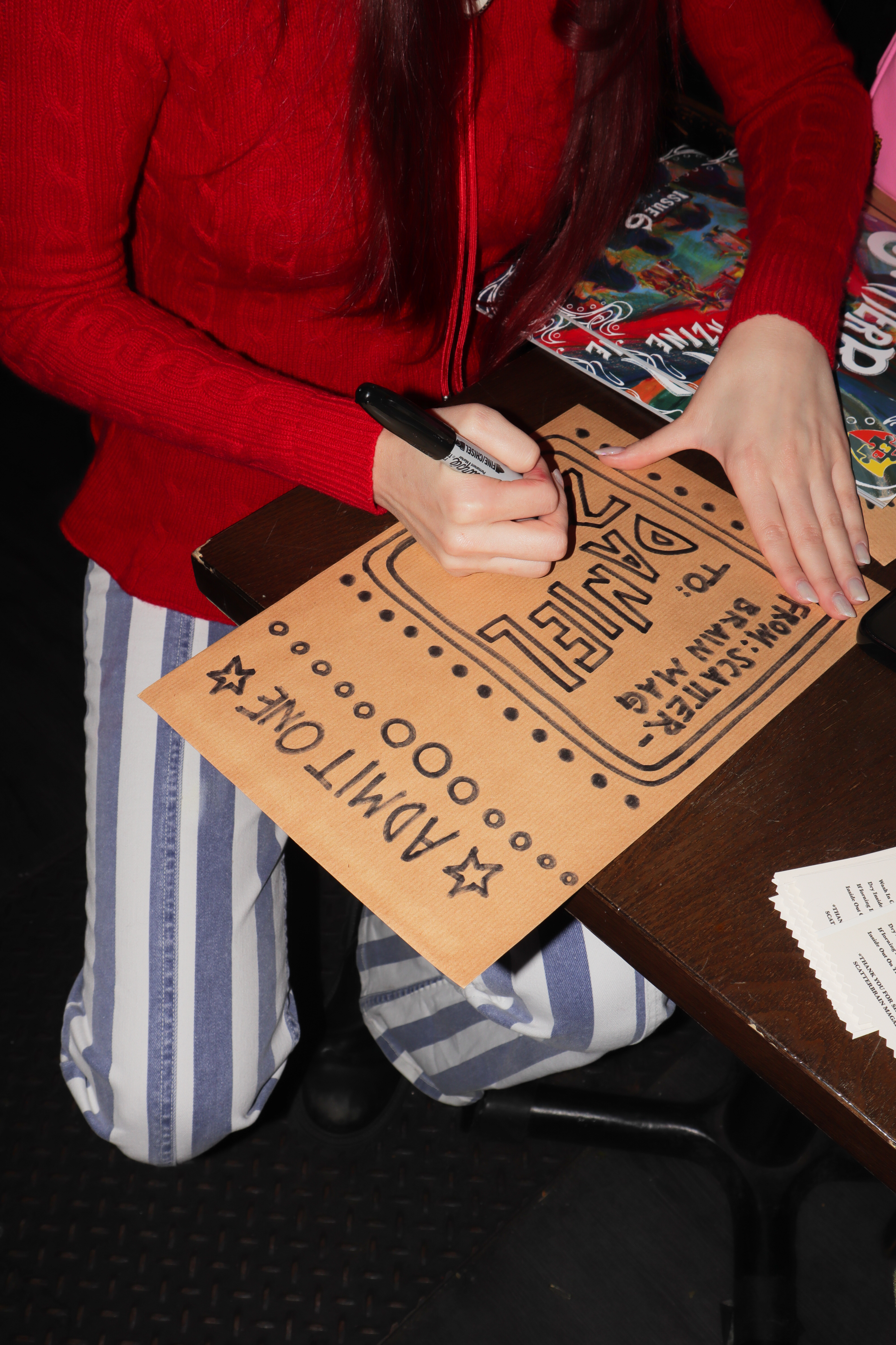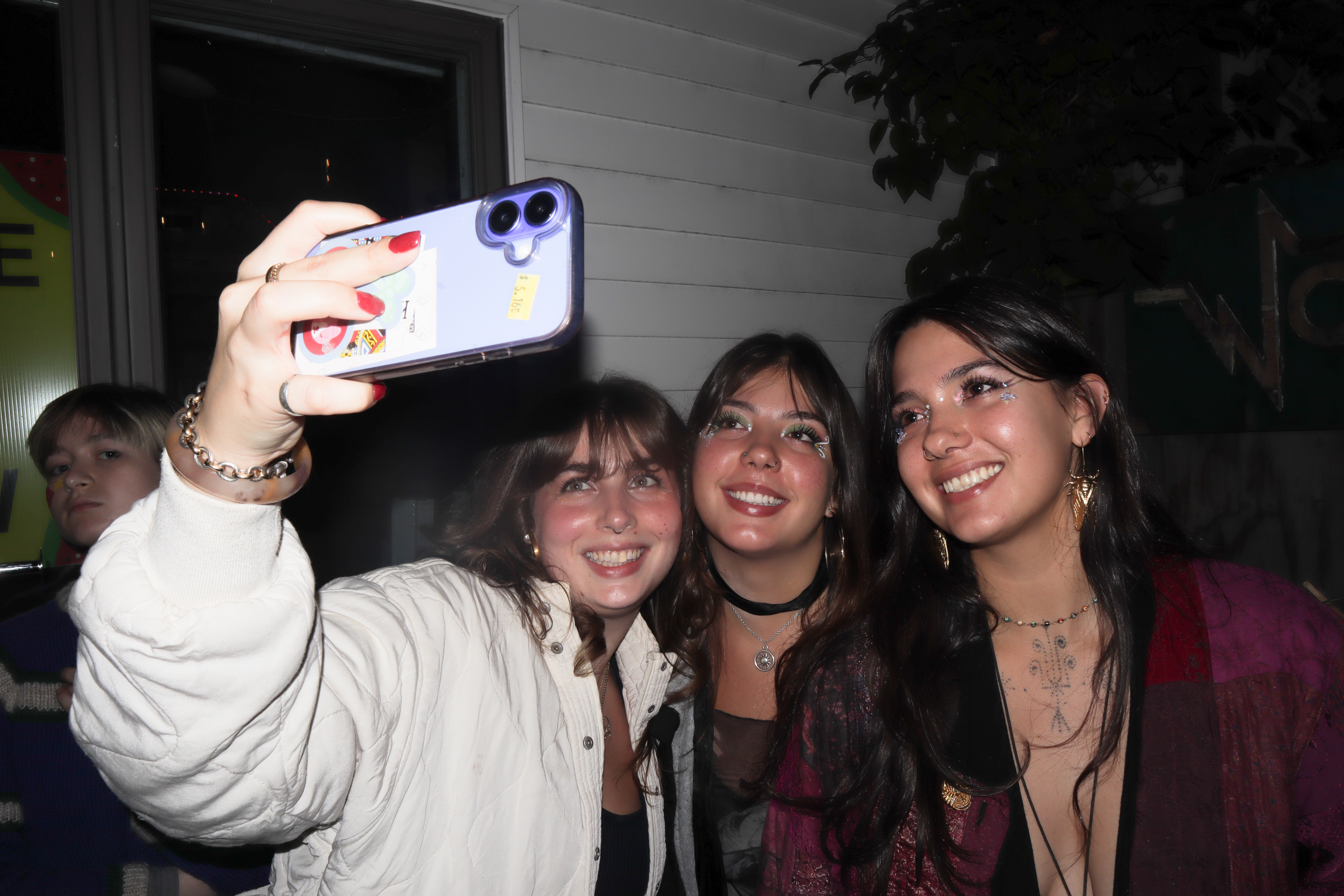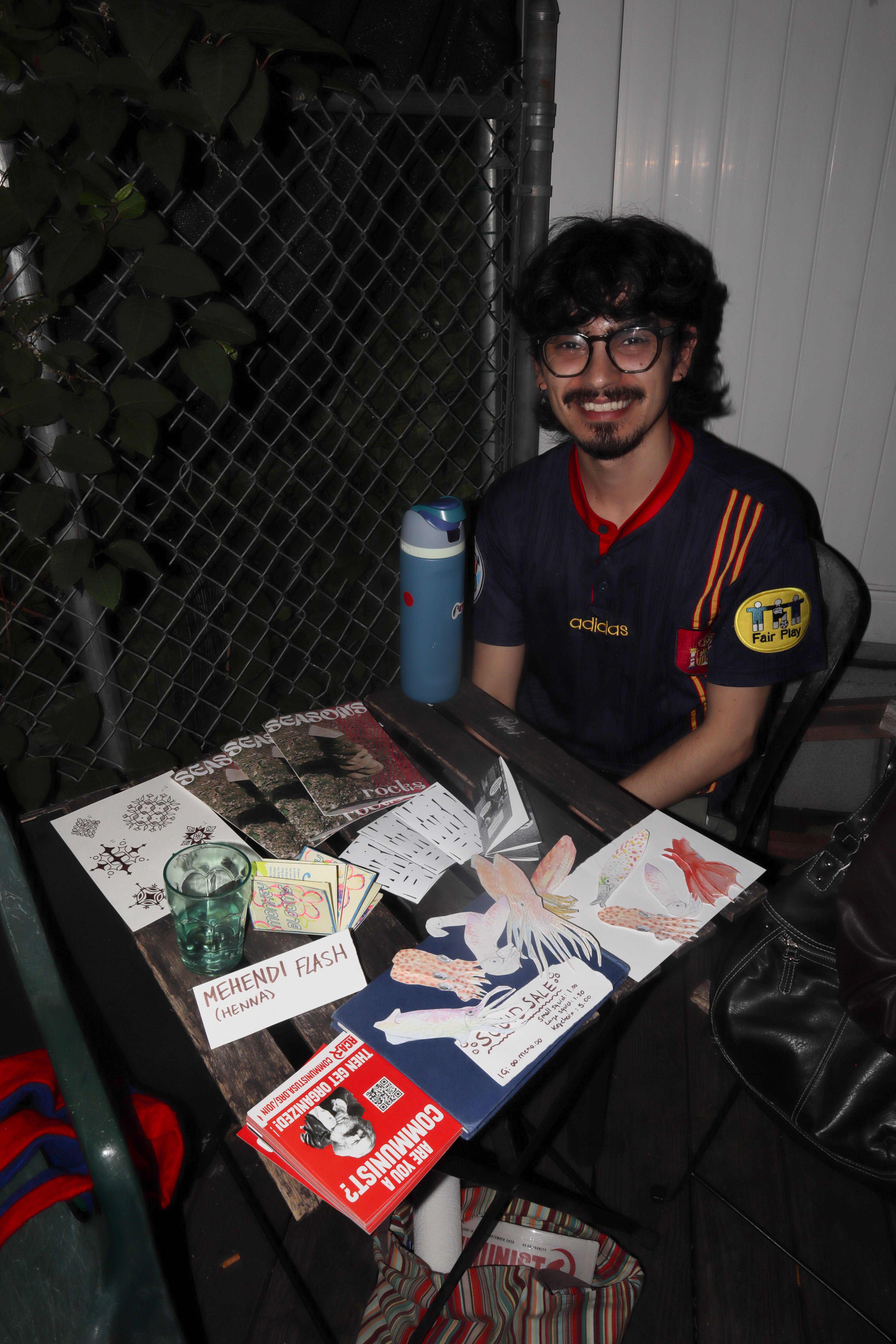 Prints sold by JaidSkai, Big Fartist, and Shanta La. Clothing designs by Nyta Lee and Shayna Block. Press-on nail sets by Stella Nails. Live mehendi flash (henna) by Shanta La. Tarot readings and face painting throughout the night by Scatterbrain Magazine. Photography by Kevin Gutoskey and Drew.